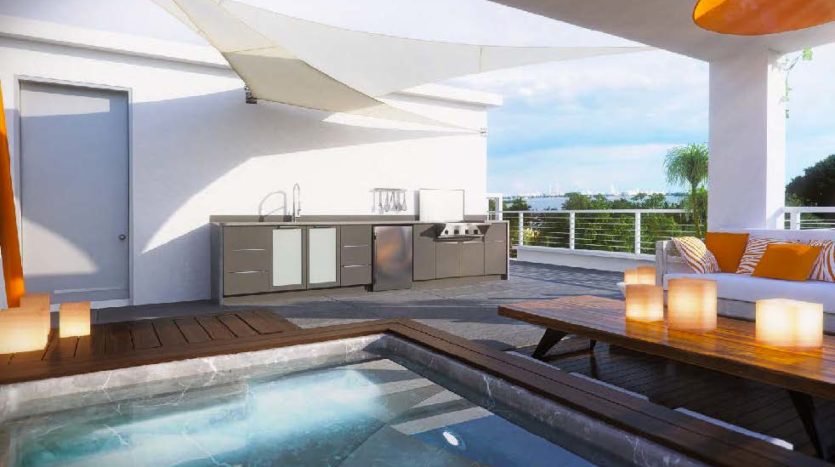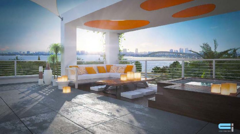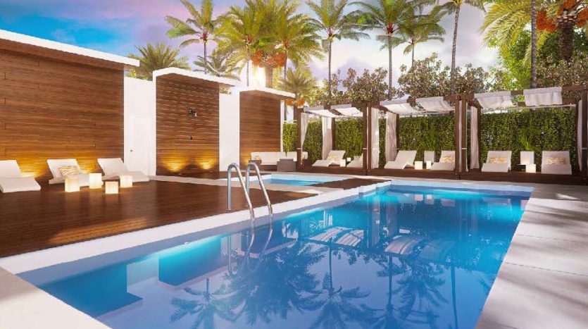 The One Bay resort style pool deck delights its privileged residents with its spectacular décor, indulging whirlpool, cabana lounge chairs and spectacular views of the bay.
